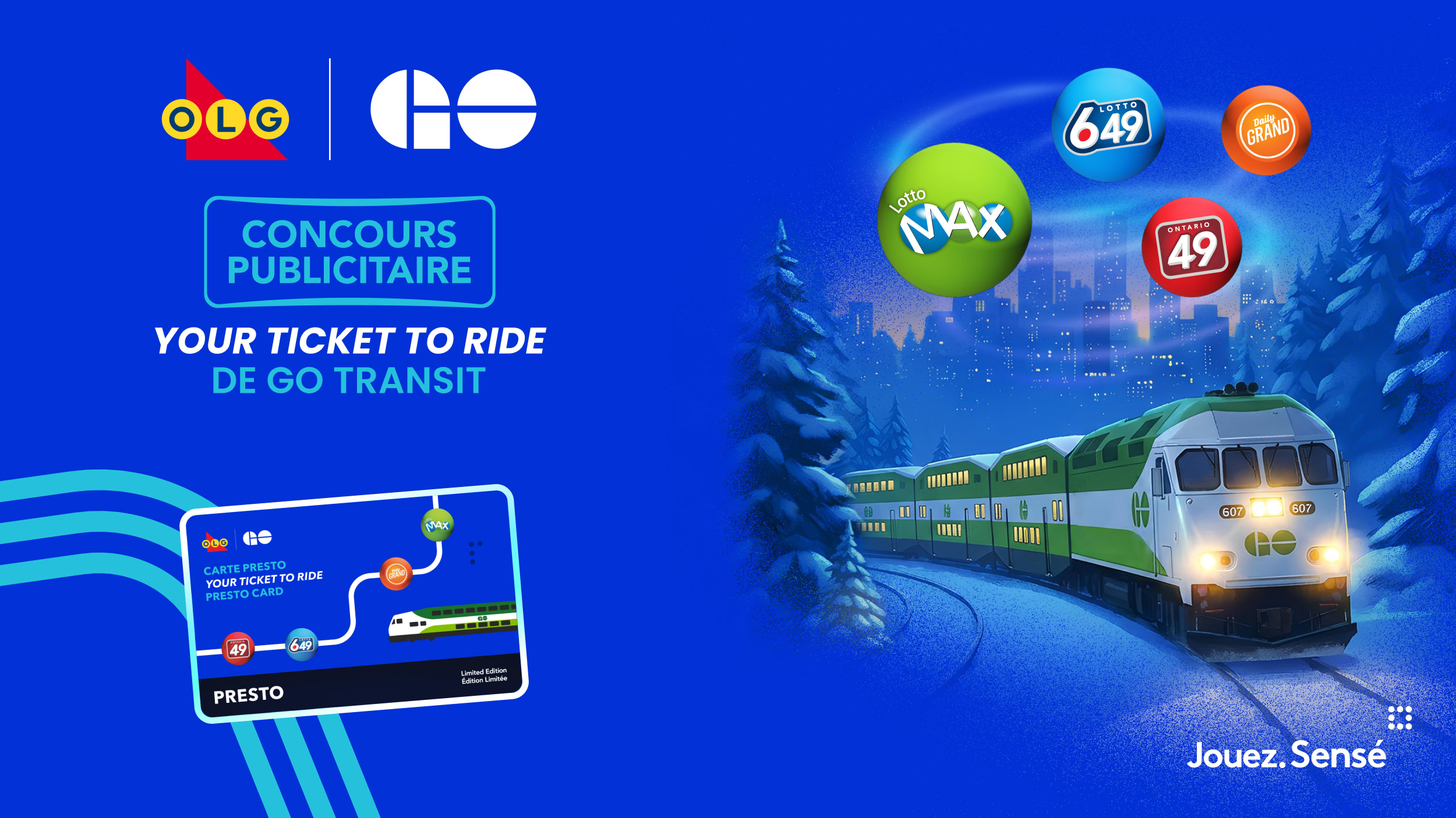 Inscrivez-vous et jouez à la loterie en ligne sur OLG.ca/GO-fr pour avoir la chance de gagner 1 des 10 prix – une année de trajets gratuits sur GO Transit d’une valeur de 5 000 $ chacun*! L’offre est disponible du 8 décembre 2025 au 1er février 2026.