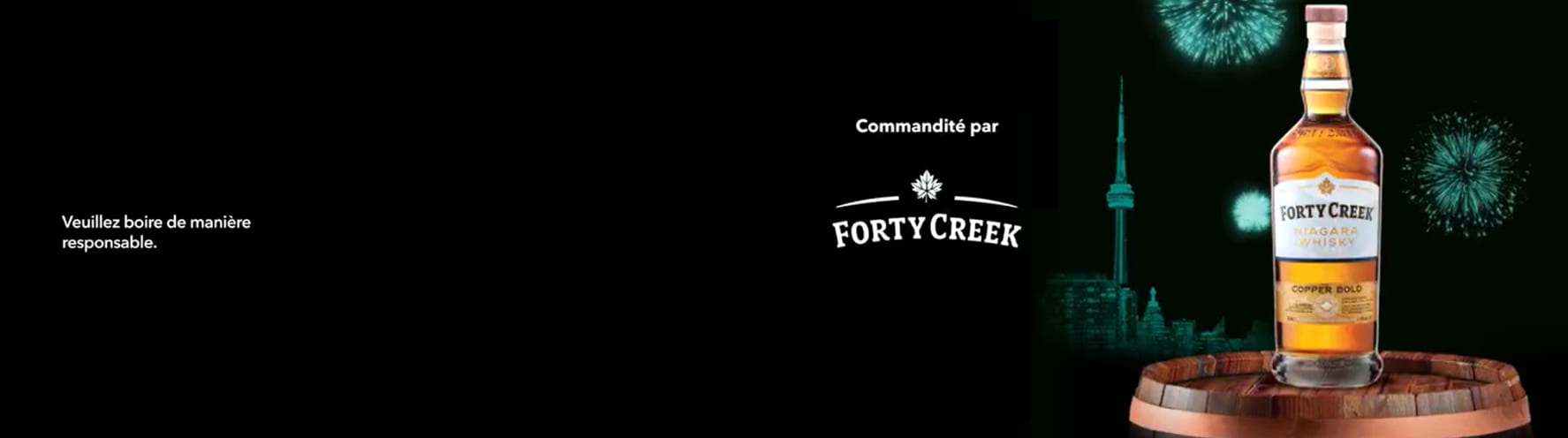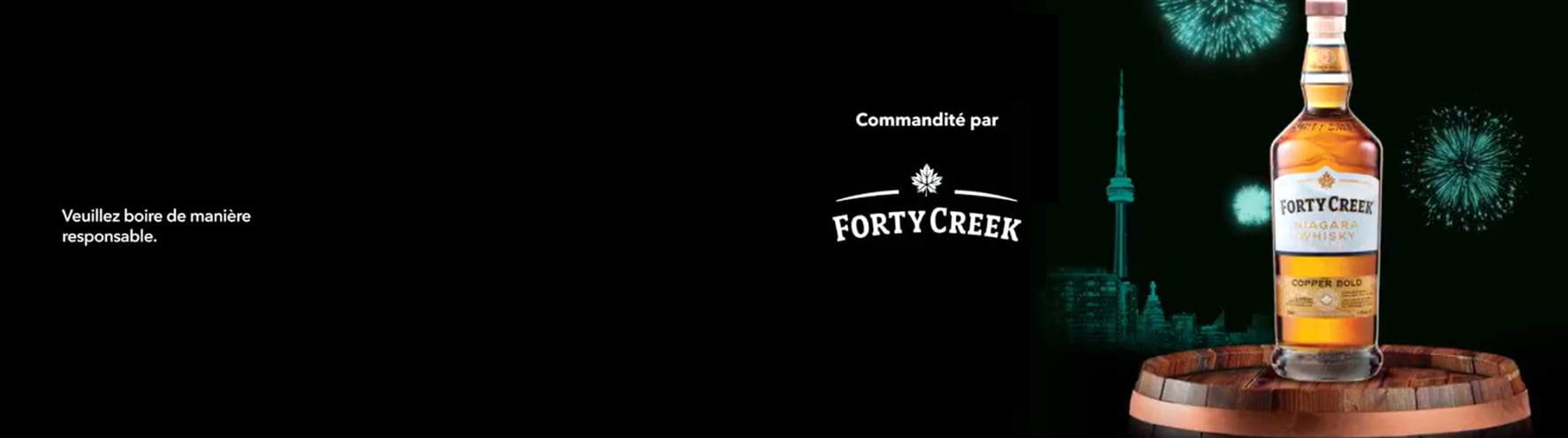 Célébrez avec vos amis et votre famille alors que nous disons au revoir à 2025 et bonjour à 2026! Voyagez vers 2026 de manière responsable avec GO, ce qui commence par un trajet en toute sécurité vers et depuis vos célébrations du Nouvel An. Avant de vous rendre dans un restaurant, un bar ou une fête de la veille du Nouvel An, prenez GO Transit ou UP Express pour un transport sûr et GRATUIT - gracieuseté de Forty Creek Whisky.